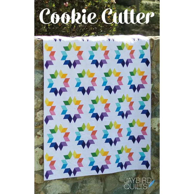 Cut with ease to form a classic six-point star design with a modern angle. Fascinating clean lines and points invite the eyes to dance amongst the stars. Skip the icing and get cutting into feature fabrics of solids, small scale prints, blenders or batiks to create a Cookie Cutter quilt of your own - with no Y seams!