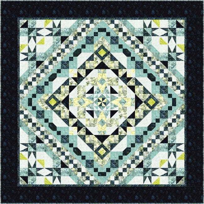 Inspired by Gaia's nurturing spirit and elemental power, this breathtaking 98" x 98" quilt designed by Tiffany Hayes of Needle in a Hayes Stack captures the quiet elegance of nature touched by winter’s kiss.