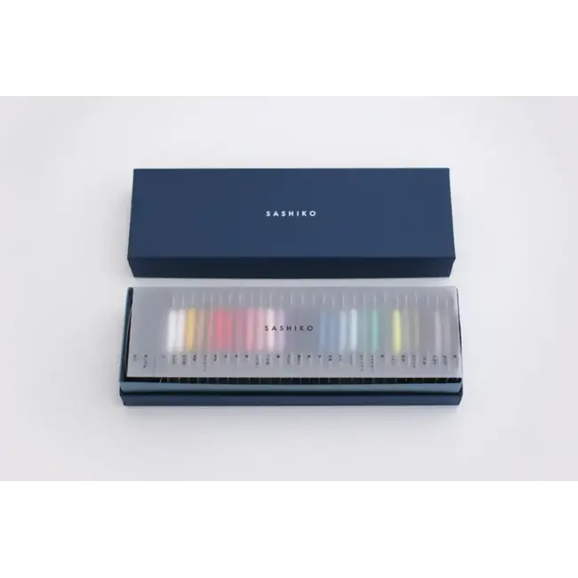 This box of Daruma's thin Sashiko thread makes a wonderful gift for your enthusaist - 29 colours of carded thread, a pincushion, four needles in a handy sewing box.