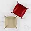 Made from faux leather PVC, these embroiderable blanks easily snap together to form a tray. Add your favorite design, then snap the corners together! This pack includes one red and one tan tray.