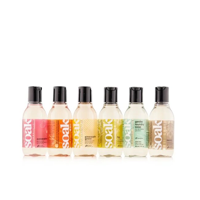 Assorted Soak Fragrances. Celebration, Yuzu, Pineapple Grove, Fig, Wild Mint, and Lacey.