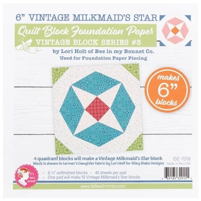 Review It's Sew Emma Vintage Milkmaid Star Quilt Block Foundation Paper Pad, 42 sheets, 6in blocks